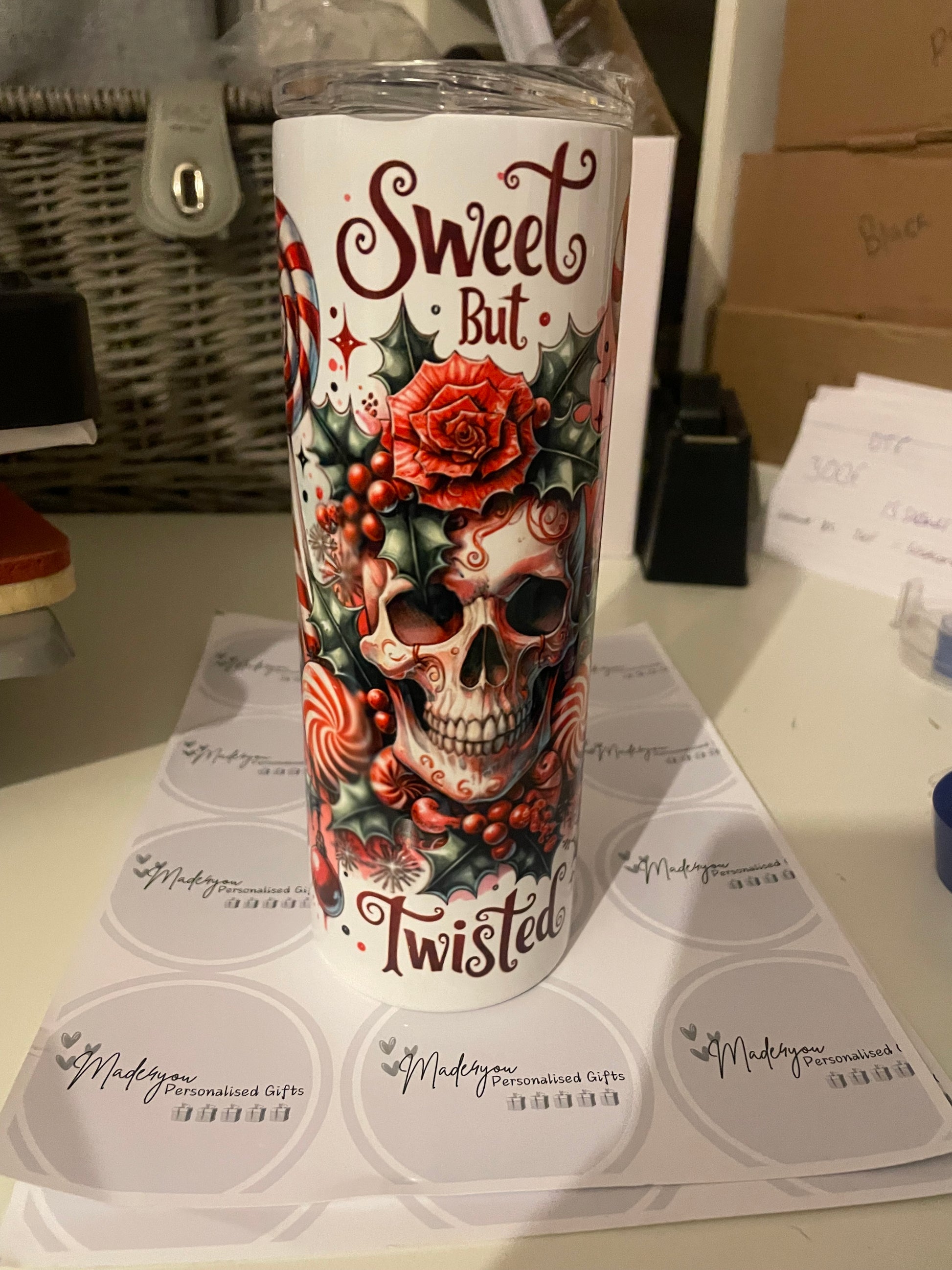 Quench your thirst with our Sweet but Twisted 20oz Tumbler! This stainless steel tumbler not only keeps your drink hot or cold for up to 8 hours, but also comes with a straw for easy sipping. Say goodbye to plastic bottles and hello to BPA-free hydration on the go!