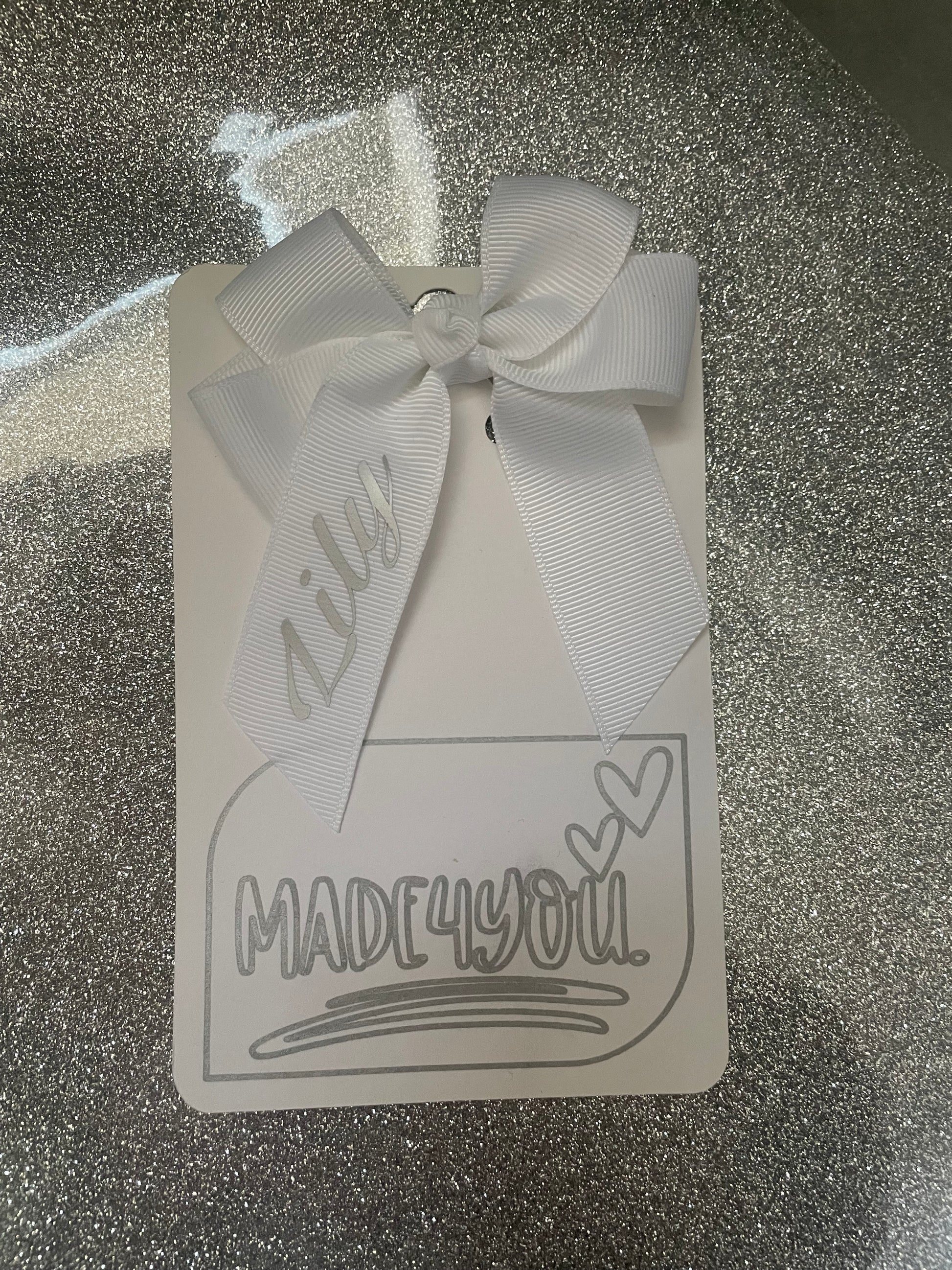 Personalize your perfect accessory with 4-inch hair bows, available in 26 different colors.