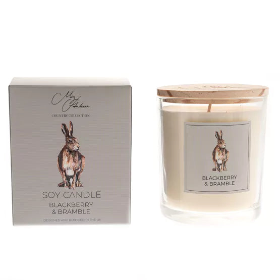 A fruity burst of blackberries and cassis blended with the freshness of green bramble leaves, wild rose and cedar wood. A vibrant and refreshing fragrance. Details: - 250g soy wax candle - Blackberry and Bramble fragrance - Meg Hawkins watercolour hare illustration on box and jar - Glass and wood - Deluxe packaging