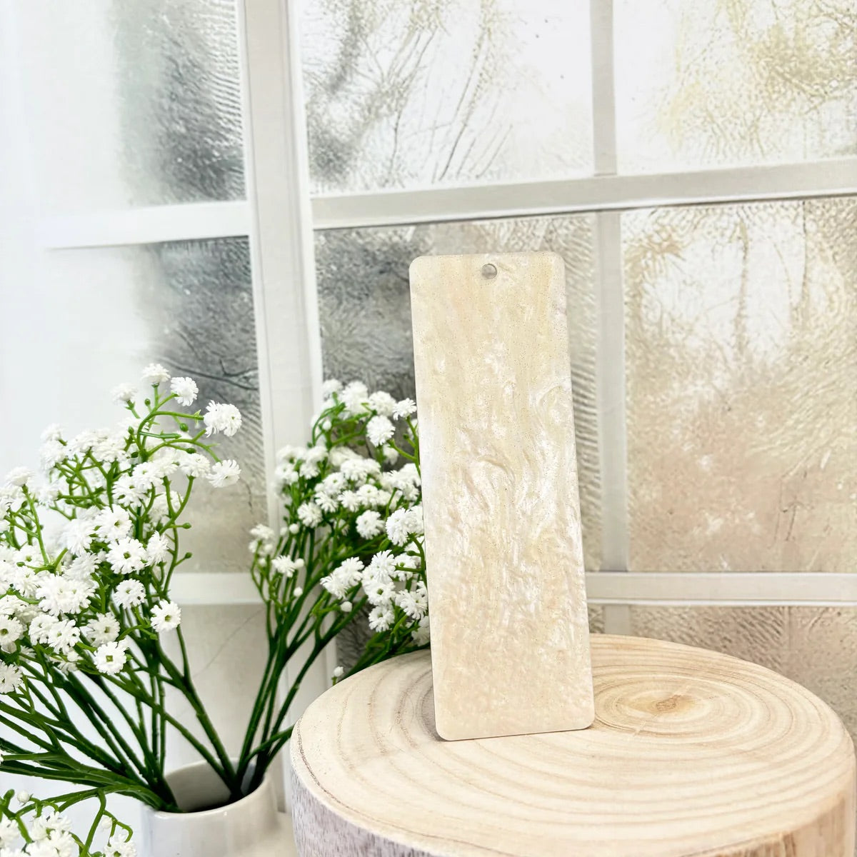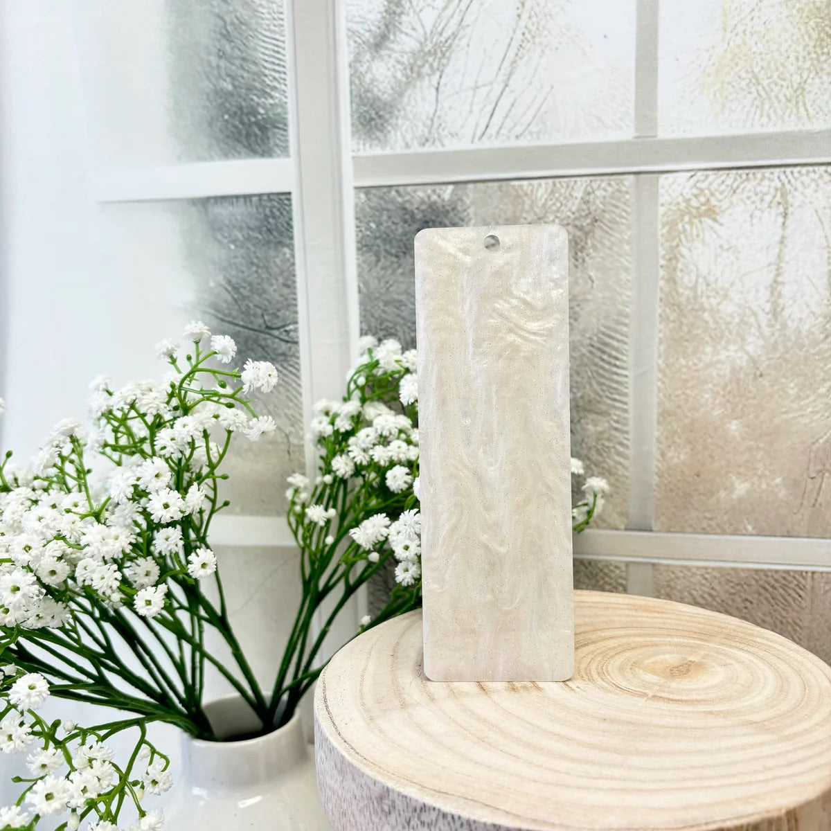 Add a touch of elegance and personalization to your reading experience with our Pearl Swirl Bookmarks. Available in white, ivory, and cream, these bookmarks are perfect for any book lover. They make a great gift for any occasion or a special treat for yourself. With their charming design, they'll keep your place in style!